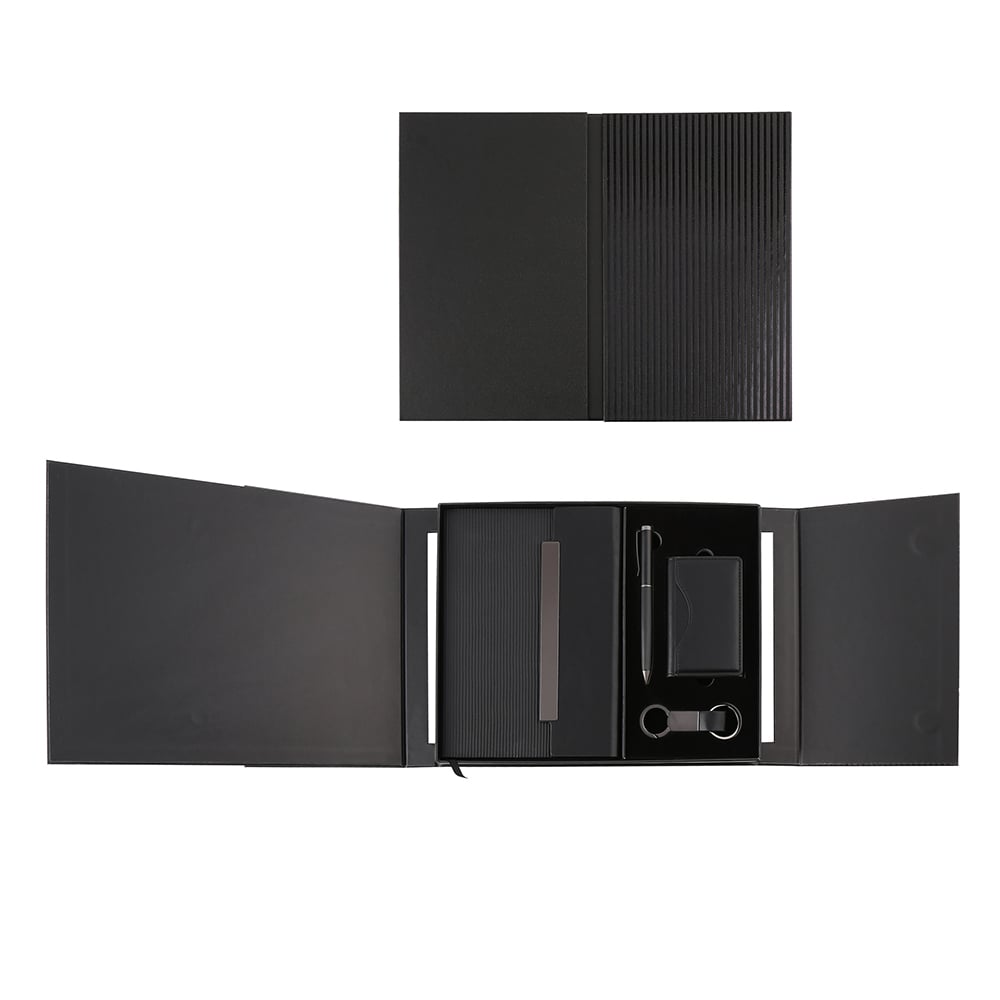 | Set Components | PU binder notebook, metal pen, PU card holder, PU keychain with metal accessories |
